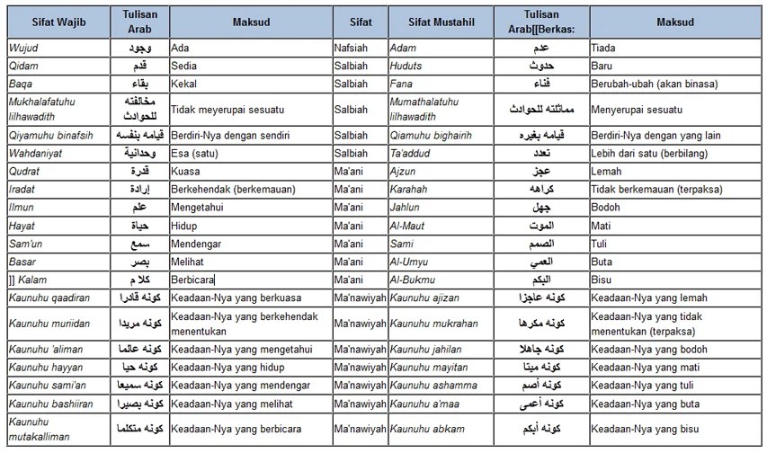 tabel 20 sifat allah, wajib dan mustahil. | Allah, Tulisan, Lelucon lucu