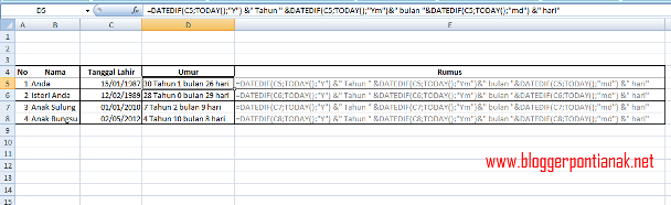 Cara Menghitung Umur di Excel 2007 dengan Fungsi DATEDIF BERTINGKAT untuk Pemula