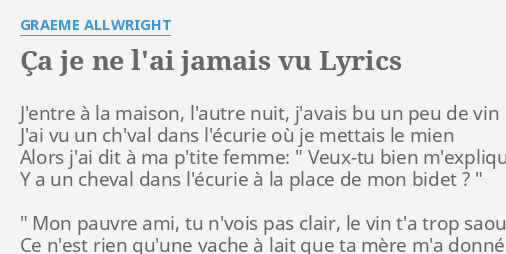 ÇA JE NE L’AI JAMAIS VU” LYRICS by GRAEME ALLWRIGHT: J’entre à la …