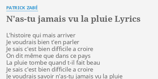 N’AS-TU JAMAIS VU LA PLUIE” LYRICS by PATRICK ZABÉ: L’histoire qui …