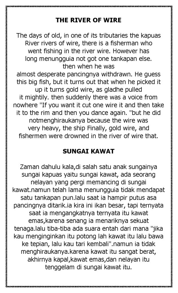 Cerita Legenda Sungai Kawat dalam Bahasa Inggris dan Terjemahan - Contoh Cerita | Cerpen | Naskah Drama | Puisi | Cerita Sukses