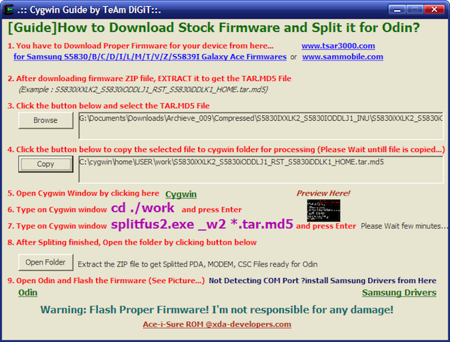 Unbrick Samsung Galaxy Ace With All-in-One GUI Tool Using Cygwin And Odin [GUIDE]