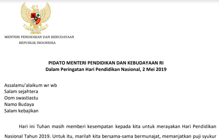 Naskah Pidato Sambutan Hardiknas 2019 - widoajiwibowo.info