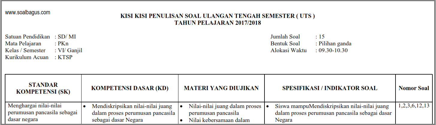 Soal Uas Pkn Sd Kelas 6