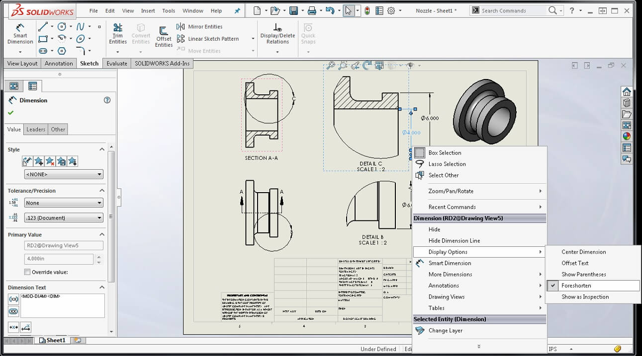 SOLIDWORKS 2016 Foreshortened Dimensions